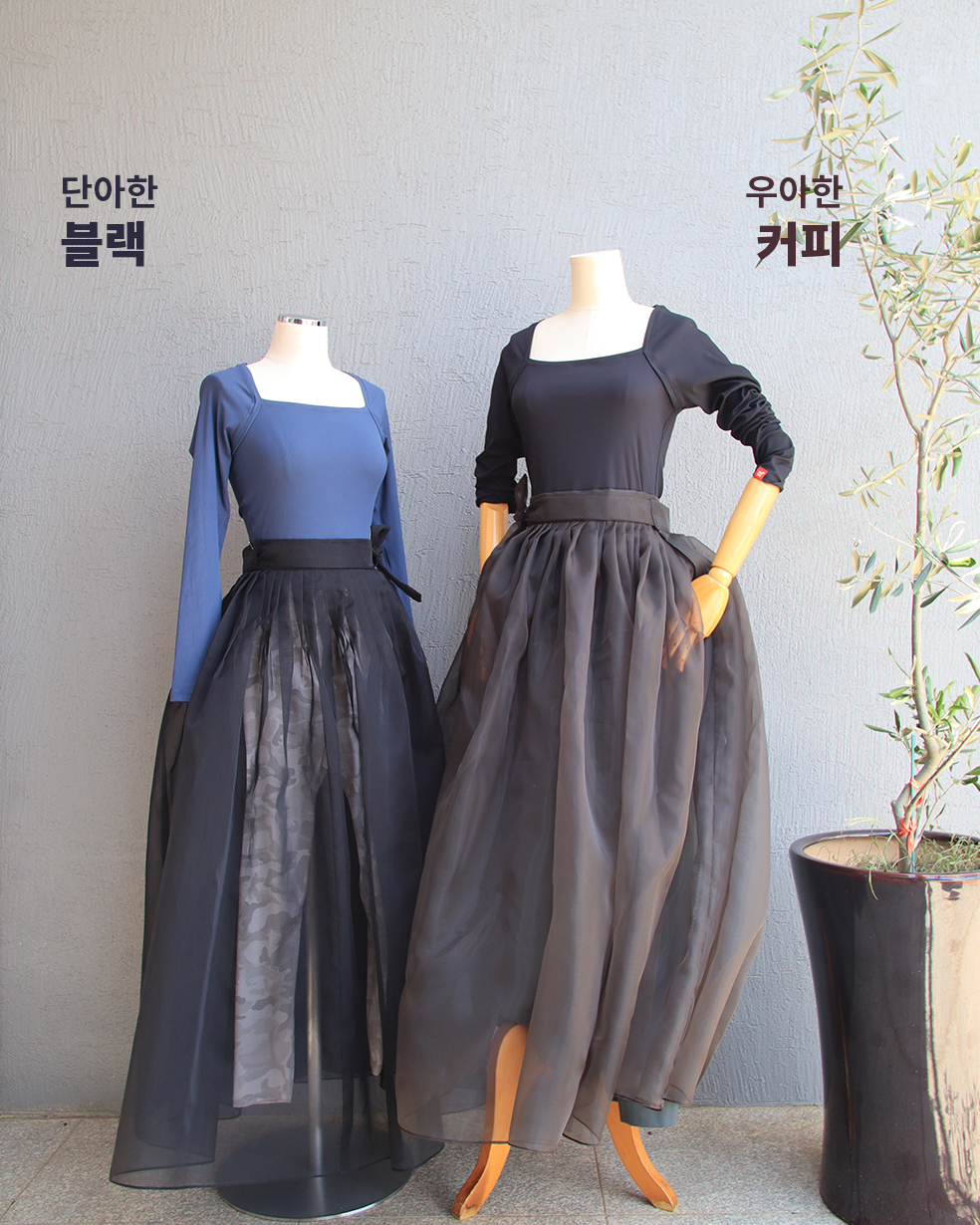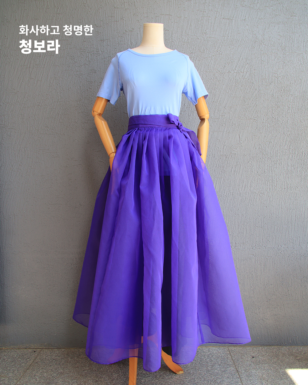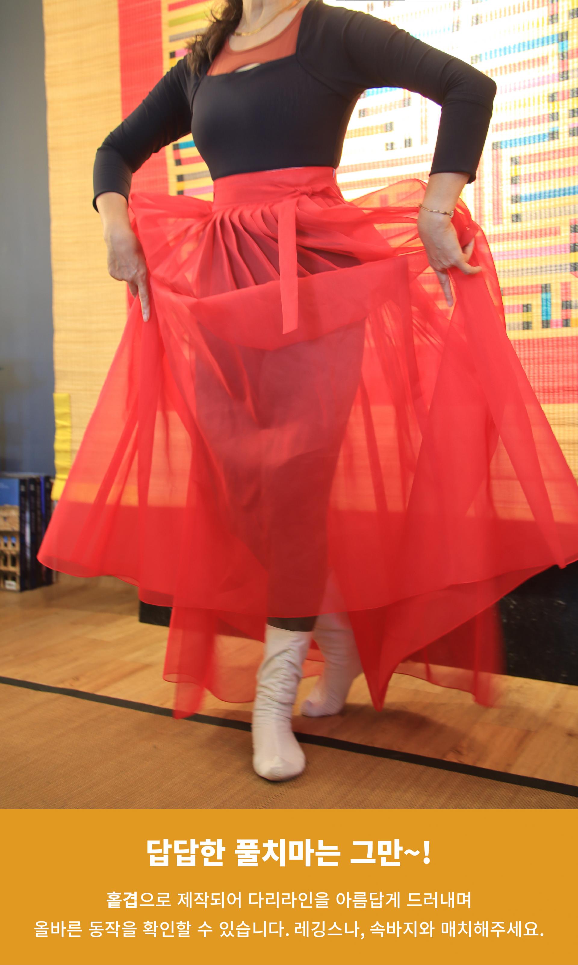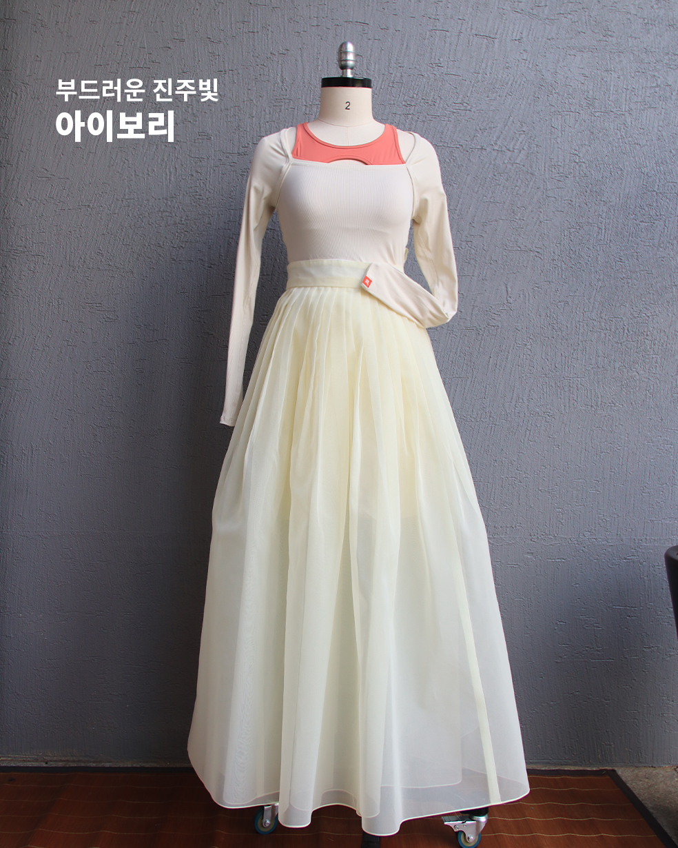 한국무용 연습복으로도, 한복 드레스로도 활용 가능한 프리미엄 오간자 원단의 단아한 허리치마 입니다.